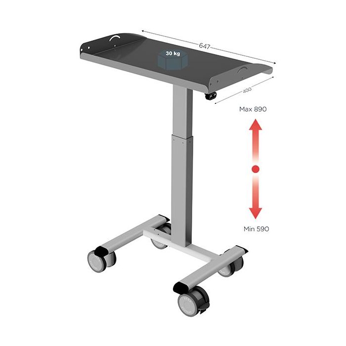 - Desserte d’atelier électrique, ergonomique et réglable en hauteur de 590 à 890 mm grâce à sa colonne télescopique