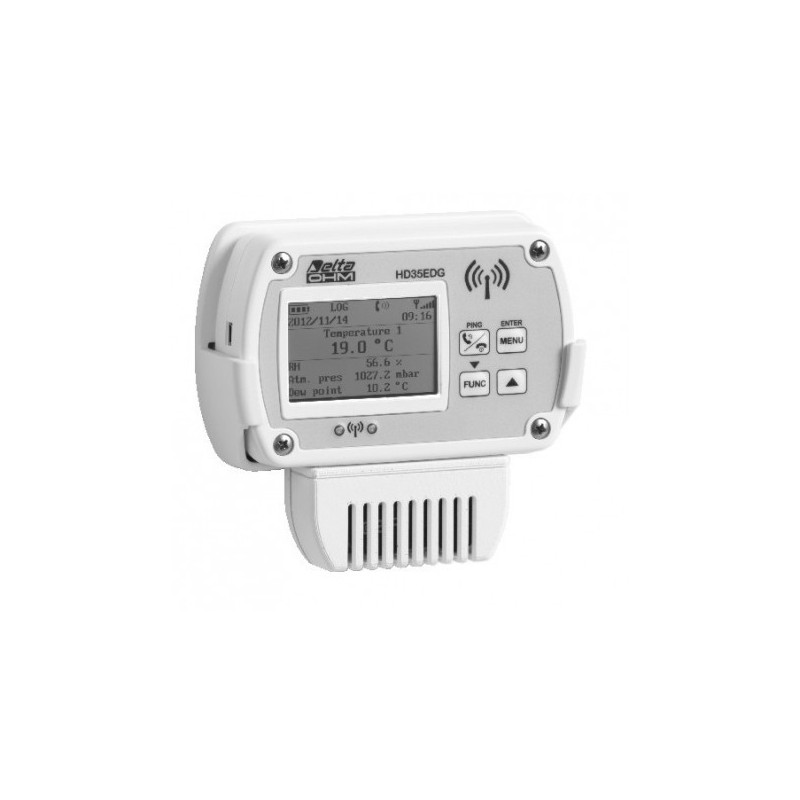 Le HD35ED-G-14BNAB-E stocke les mesures dans sa mémoire interne (32 000 échantillons) et transmet les données enregistrées à l’unité de base automatiquement à intervalles réguliers ou sur demande. Les capteurs sont tous à l’intérieur du boîtier. Grandeurs calculées : point de rosée, température de bulbe humide, humidité absolue, rapport de mélange, pression de vapeur partielle. Alarme acoustique avec buzzer interne. Configuration via le logiciel HD35-AP-S ou en façade clavier. Alimenté par la batterie interne. Installation murale amovible (en utilisant le support inclus) ou fixe (avec brides en option).